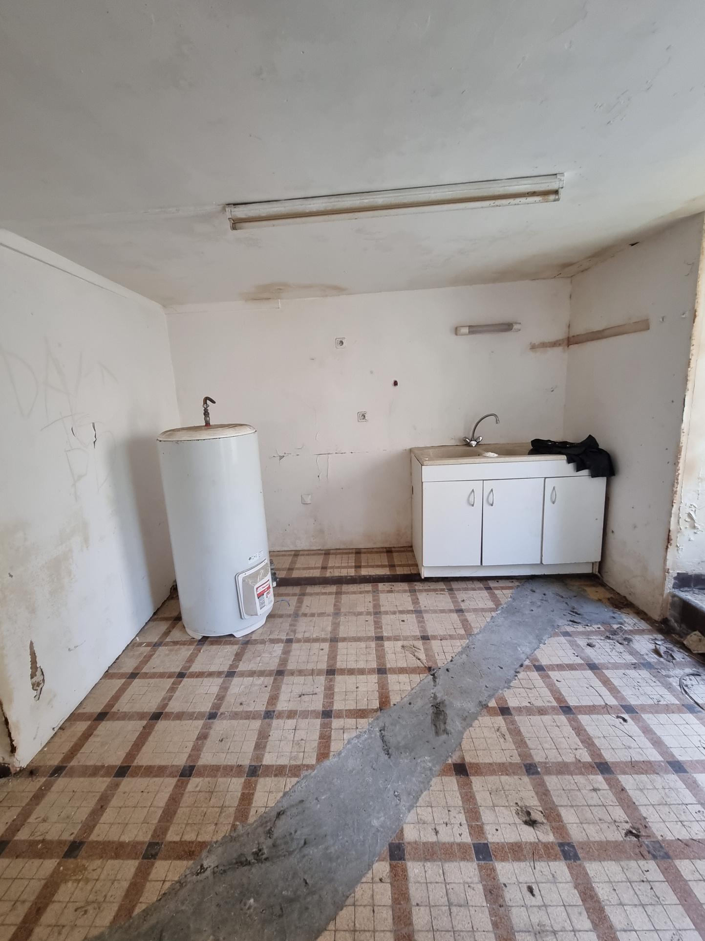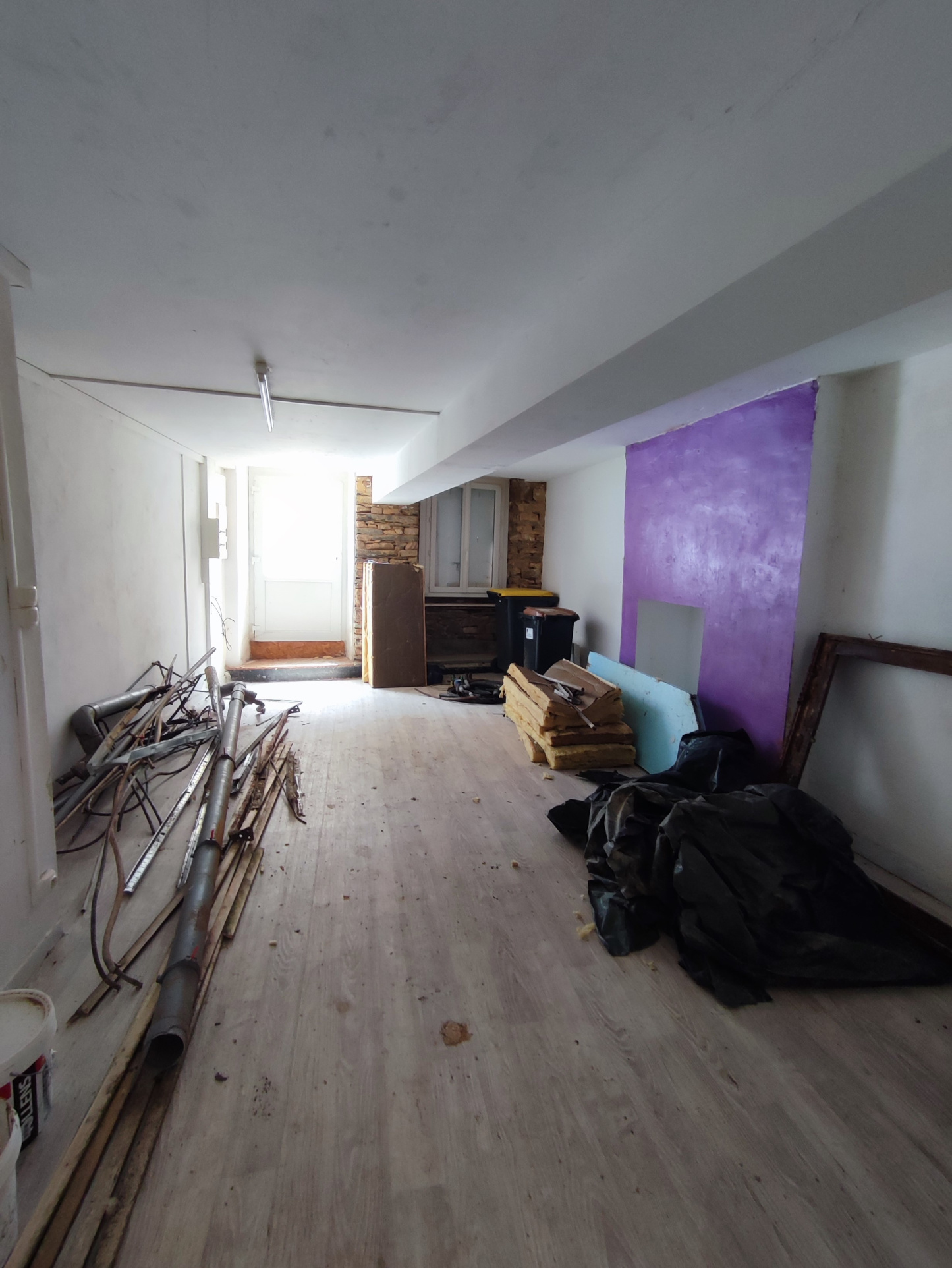 Le second logement lui aussi à rénover se compose d'une pièce au rez-de-chaussée et d'une grande chambre avec salle d'eau à l'étage.