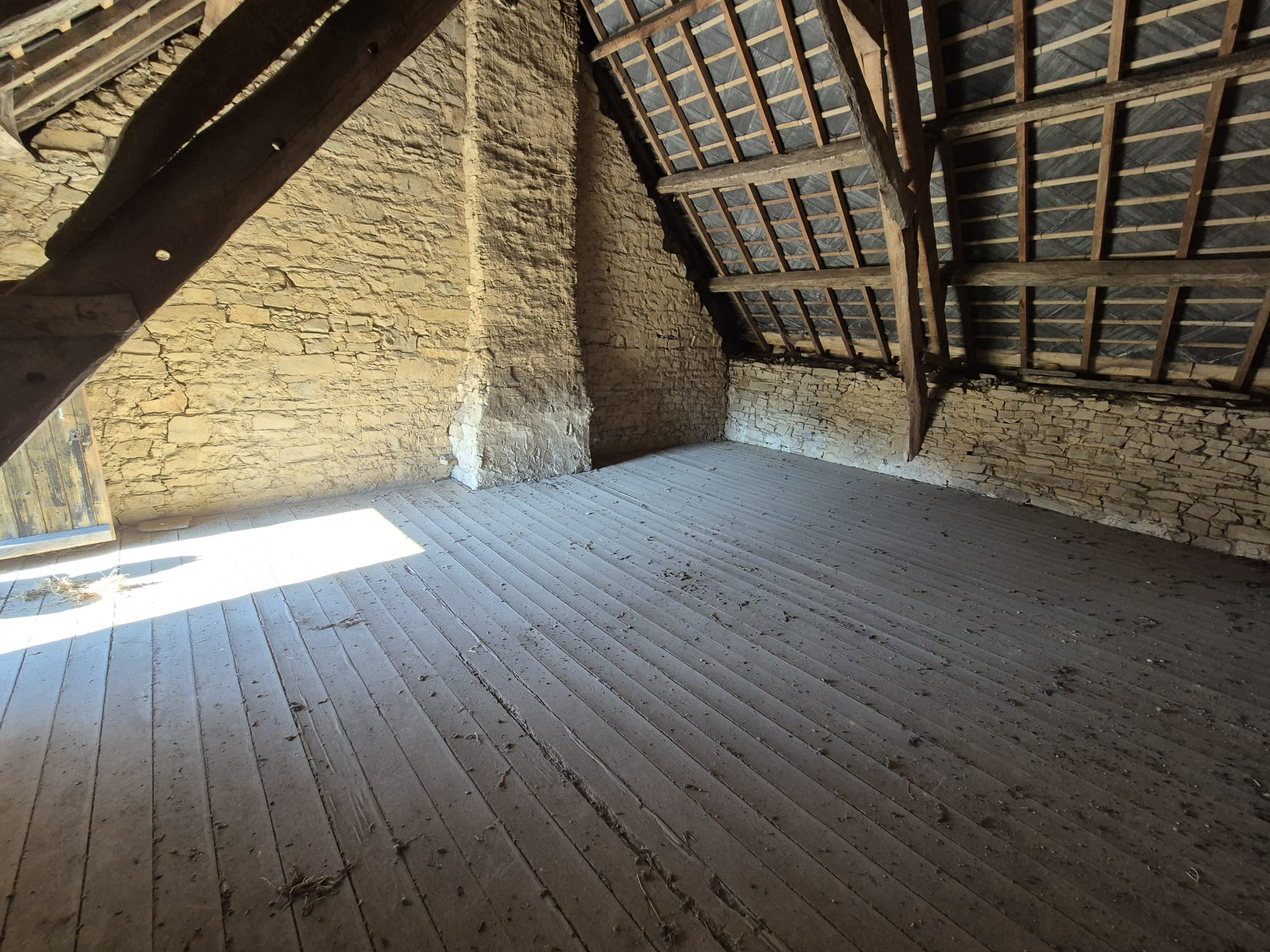 Cette maison de caractère, en pierre offre une superficie d'environ 57m², elle se compose au rez-de-chaussée d'une pièce de vie sur dalle béton avec cheminée et coin cuisine. A l'étage un grenier de plus de 25m² aménageable. Cette maison à rénover est déja raccordée à l'eau et l'électricité.